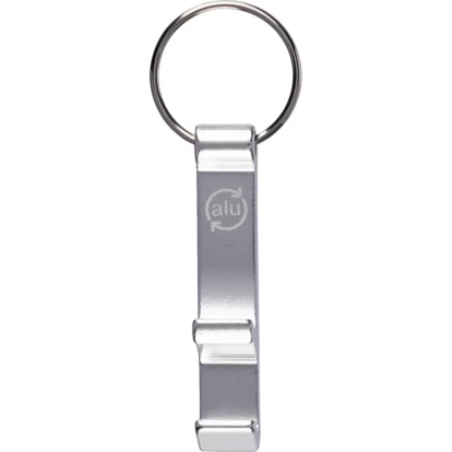 Dodatkowe informacjeBrelok do kluczy z funkcją otwierania butelek, ikona aluminium z recyklingu na produkcie, może zostać użyty jako stojak do telefonu, produkt wykonany z aluminium z recyklingu