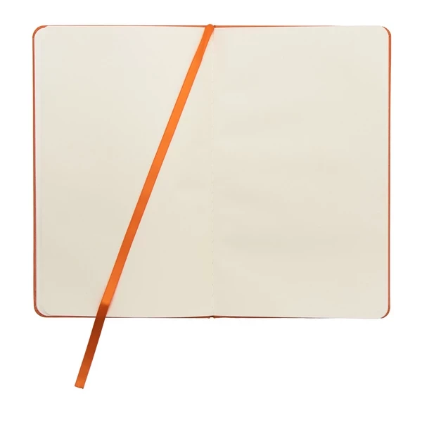 Dodatkowe informacjeNotatnik w twardej oprawie z elastyczną gumką chroniącą wnętrze. Papier kremowy chamois w kratkę. Tasiemka do zaznaczanie ostatniej zapisanej strony.